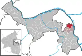 | Localização de Bodenheim no distrito de Mainz-Bingen | |