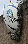 O rugby foi inventado na Rugby School pelo aluno William Webb Ellis em 1823, quem numa partida de futebol rompeu as regras e tomou a bola com suas mãos: correu até o arco, chegando ao mesmo eludiu ao arqueiro e atingiu a marcar enquanto era tackleado por outro colega que o perseguia; tal acção imediatamente inspirou aos demais alunos e o rugby fez-se popular na instituição. Ao lado da escola encontrava-se a zapatería de William Gilbert, foi ele quem criou uma bola de couro adaptado para jogar com as mãos, mas a forma ovalada se deveu acidentalmente ao material empregado: uma vejiga urinaria de porco. Com a rápida expansão do rugby por Warwickshire, Gilbert fundou a empresa que leva seu nome.