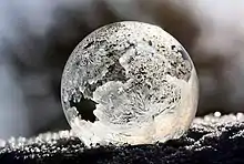 As bolhas de sabão criadas ao ar em uma temperatura abaixo de -15°C (5°F) são congeladas quando tocam uma superfície. O ar do interior é perdido gradualmente por difusão, fazendo as bolhas se enrugarem com o próprio peso.