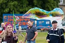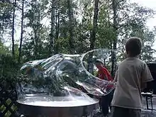 Bolha de sabão é uma película muito fina de sabão e água em forma de esfera e de superfície iridescente. Normalmente as bolhas de sabão duram apenas alguns segundos e logo explodem por si mesmas ou por contato com outro objeto. Muitas vezes são usadas como objeto de jogos para crianças, porém seu uso em espetáculos artísticos demonstra que também podem ser fascinantes para os adultos. Podem também ajudar a resolver problemas matemáticos complexos sobre o espaço, já que sempre se busca a menor área de superfície entre pontos ou arestas.[1]