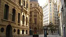O edificio sede de suas operacções, foi construído entre 1913-1917 pelo arquiteto Emile Jecquier, o qual foi declarado Monumento Nacional em 1981. Construído sobre a Rua Bandera em pleno centro de Santiago de Chile em terrenos que pertenceram as monjas Agustinas. Foi inaugurado oficialmente em 25 de dezembro de 1917. Sua arquitetura de clara inspiração renascentista francesa, conta com uma planta de desenho triangular.