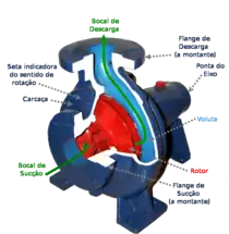 Acionada mecanicamente por um eixo rotativo, a rotação do rotor da bomba transfere energia para o fluido através das palhetas do rotor. O fluido presente na sucção entra no olho do rotor, uma cavidade de diâmetro menor, interna, a partir de onde escoa em direção ao diâmetro externo pelos canais formados entre as palhetas do rotor. O fluido deixa o rotor com considerável velocidade absoluta e uma parcela de energia cinética, que deve ser convertida em energia potencial de pressão. Isto é realizado nas partes não rotativas.