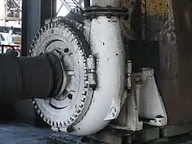 A bomba centrífuga (também chamada de bomba centrífuga pura ou radial) é uma subclassificação das turbobombas, cuja finalidade é o transporte de fluidos por escoamento.[1] Por se tratar de uma máquina hidráulica geratriz, o trabalho mecânico (ou de eixo) recebido é transformado em energia, que é transferida ao fluido sob a forma de energia de pressão e cinética. O trabalho de eixo normalmente é fornecido por meio de um motor elétrico, enquanto que a transformação de energia acontece no rotor (componente que difere este tipo de máquina dos demais).