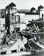 Casas danificadas perto da sinagoga em Sarajevo (abril de 1941)