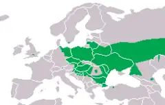 Esta espécie está presente na Alemanha, Áustria, Bielorrússia, Bósnia e Herzegovina, Bulgária, Cazaquistão, Croácia, Dinamarca, Eslováquia, Eslovénia, Federação Russa, Grécia, Hungria, Letónia, Lituânia, Moldávia, Polónia, República Checa, Roménia, Sérvia, Turquia e Ucrânia. Foi também reintroduzida na Suécia e introduzida no Reino Unido.