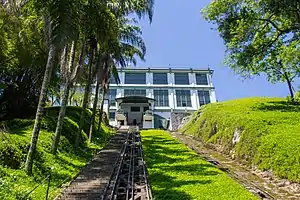 Os dois bondes em sistema funicular são sustentados por um cabo de aço de uma polegada e meia de diâmetro, com resistência para 90 toneladas.[3] O maquinário é mormente alemão, muito embora haja um motor sobressalente italiano.