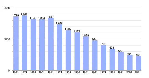| Variação demográfica do município entre 1861 e 2011[3] |