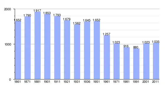 | Variação demográfica do município entre 1861 e 2011[3] |