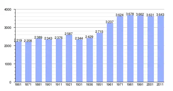 | Variação demográfica do município entre 1861 e 2011[3] |