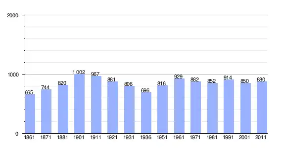 | Variação demográfica do município entre 1861 e 2011[3] |