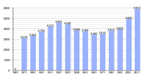 | Variação demográfica do município entre 1861 e 2011[3] |
