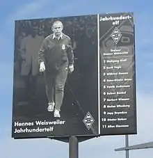 Em 1º de agosto de 2000, o Borussia Mönchengladbach comemorou o centenário do clube. Como parte das comemorações, ao lado do técnico Hennes Weisweiler, os seguintes jogadores foram eleitos pelos torcedores como os melhores de todos os tempos: O goleiro Wolfgang Kleff, na defesa Berti Vogts, Hans-Günter Bruns, Wilfried Hannes e Patrik Andersson, no meio-campo Rainer Bonhof, Stefan Effenberg, Herbert Wimmer e Günter Netzer e no ataque Jupp Heynckes e Allan Simonsen. Mais tarde, cartazes com as imagens dos jogadores nas laterais norte e leste foram anexados ao exterior do estádio no Borussia Park.