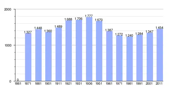 | Variação demográfica do município entre 1861 e 2011[3] |