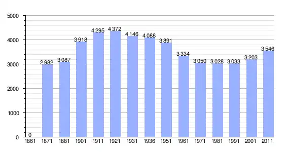 | Variação demográfica do município entre 1861 e 2011[3] |