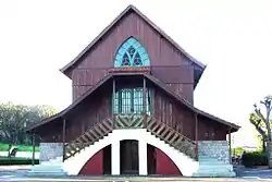 - O portal e a reprodução da fachada da Casa Mila, construção germânica do início do século XX, originalmente localizada no centro da cidade. O gradil na abertura superior central do portal é original da antiga construção.