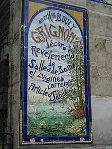 O imóvel foi construído na mesma época do canal, isto é, por volta de 1826. A antiga casa Bouly, atacadista de ladrilhos, louças sanitárias e revestimentos de cozinha e casa de banho, mudou-se para lá em 1867 e decorou a entrada das suas instalações com publicidade em painéis de cerâmica de cores vivas. A fachada do boulevard compreende das arcadas inteiras até o primeiro andar, incorporando as janelas do entressol. A porta principal, situada sob a arcada central, é enquadrada de cada lado por um nicho contendo uma estátua de estilo romano.