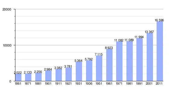 | Variação demográfica do município entre 1861 e 2011[3] |