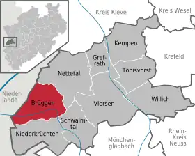 ![]() Brüggen Mapa da Alemanha, posição de Brüggen acentuada |
