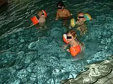 Designa-se como braçadeiras ou flutuadores os insufláveis para colocação nos antebraços e que permitem a aprendizagem em segurança da natação. Tipicamente são secções cilíndricas plásticas insufláveis que se usam em ambos os membros superiores. Por terem menor densidade que a água, aplicando-se o Princípio de Arquimedes irão impedir que quem as use se afunde na água. Embora normalmente sejam comuns em crianças, também há braçadeiras para adultos.