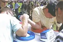 A luta de braço (também conhecida como quebra de braço, braço de ferro ou queda de braço)[1] é uma atividade esportiva em que dois contendores, com um dos cotovelos apoiados sobre superfície horizontal, enlaçam as mãos ou os punhos, e cada um, aplicando força muscular, tenta fazer o adversário desdobrar o braço.