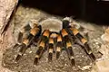 A Brachypelma smithi tarântula também conhecida como Caranguejeira de Joelho Vermelho Mexicana, tem o nome por ser originária do méxico. Possuem junções das patas de cor alaranjada-vermelha, as quais lhe dão o nome, e as suas partes escuras bem pretas. Estas aranhas podem viver até aos 25 anos, se não mesmo 30.