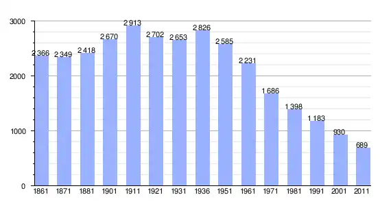 | Variação demográfica do município entre 1861 e 2011[3] |