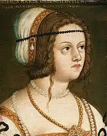 Ela trouxe ao marido um dote de 400 000 ducados, além de ter lhe proporcionado a reivindicação de seu direito sobre o estado de Milão.[3]