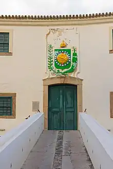 O brasão da Bahia é o emblema heráldico e um dos símbolos oficias do estado brasileiro da Bahia.[1][2] Está em uso oficial desde, ao menos, o ano de 1891.[3] Houve uma versão inicial que foi modificada em meados do século XX, chegando então ao desenho vigente do brasão.[4] Por sinal, este desenho apresenta personificações do trabalho/indústria e da república/liberdade e referências à colonização portuguesa do Brasil iniciada na Bahia (isto é, a "descoberta do Brasil" em 1500 por aquele país europeu) e às bandeiras nacional e estadual.[1][2][3][4][5]
