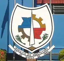 O brasão da cidade de Abaetetuba representa uma síntese da vida econômica do município. Sua forma, uma taça, simboliza comunhão ou cooperação na economia em Abaetetuba. Seguindo esse principio, no centro do escudo há o capacete de Mércurio (tradicional símbolo do comércio) e a roda dentada (a indústria), ambos interligados numa sequência harmônica e cooperativa. Nas rodas dentadas, representou-se a madeira e a cerâmica como principais atividades industriais. Os ramalhetes de cana-de-açúcar colocados na base representam a lavoura em geral. Como figura central do brasão nota-se um barco estilizado, veículo importantíssimo no escoamento da produção municipal.[1]