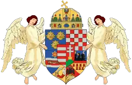 Em 1867 criou-se o Império Austro-Húngaro em virtude do compromisso homônimo pelo que se reconheceu o Reino da Hungria como uma entidade equiparada a Áustria dentro do Império, a partir daquele momento, Austro-Húngaro.[5] No Reino da Hungria, começou-se a utilizar um escudo no que figuravam os brasão dos territórios integrados em Transleitania, a parte húngara, com as figuras de dois anjos como tenantes ou suportes do escudo e timbrado com a Coroa de São Estevão Os brasão que figuraram neste escudo simbolizaram os seguintes territórios: