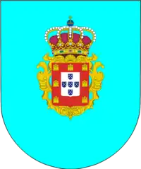 | Escudo | Escudo português, de goles, com um braço destro armado, movente do flanco sinistro, empunhando um pendão de quatro pontas farpadas, carregado de uma cruz de goles, aberta, da Ordem de Cristo, içada em haste lanceada em acha d'armas, tudo de prata. O Escudo é encimado de coroa mural de ouro, de oito torres, suas portas abertas de goles. |