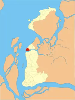 Esta situado na interseção da Baía de Santo Antônio (Praia da Brasília), com o prolongamento da Avenida Beira-Mar/Estrada Principal do Outeiro, que segue até os loteamento Bosque Rosa do Vale e Bosque Humberto Lobato até alcançar o rio Maguari.