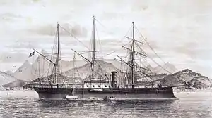 | Propulsão | Velas e vapor 3 mastros 2 caldeiras Motor à expansão simples Potência de 250 cavalos Hélice de 4 pás |