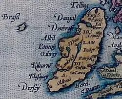 Como «O'Brasil» é atualmente um nome próprio irlandês; «Hy Bressail» ou «O Brazil» (que significa «Ilha Afortunada»), «Brasil», «Bracil», «Bracir», que são corruptelas da palavra original gaélica. Acompanham-na nos mapas ilhas como a dos Demônios; Avalon, da lenda do rei Artur, ilha de São Brandão, Drogio, Emparedada, Estotiland e Grocelandia. Foi intensamente procurada, inclusive pelo «desconcertante Cristóvão Colombo», comenta a Enciclopédia acima citada.