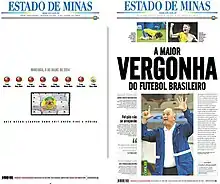 Jornais brasileiros mostraram o resultado com manchetes como "A maior vergonha da história" (Lance!), uma "Humilhação histórica" (Folha de S.Paulo), "A maior vergonha do futebol brasileiro" (Estado de Minas) e "O Brasil está morto" (O Globo).[115] O jornal português Correio da Manhã afirmou que o resultado foi pior que o "Maracanaço", na final da Copa do Mundo FIFA de 1950.[116] O francês L'Équipe simplesmente disse: "Le desastre" (O desastre).[117] Escrevendo para o Sky Sports, Matthew Stanger descreveu o jogo como "constrangimento final",[118] enquanto Miguel Delaney da ESPN referiu-se ao jogo como Mineirazo.[119] O jornal alemão Bild, por sua vez, se disse "sem palavras" e referiu-se ao jogo como a "loucura do 7–1" pela "brilhante equipe alemã".[120]