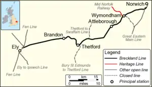 A The Breckland Line é um de ferrovias do Sistema Nacional britânico de ferrovias, que interliga a Cambridge e Norwich, incluindo Brandon, Wymondham. A linha é basicamente uma ferrovia suburbana, mas que também atrai passageiros em viagens de negócios ou de lazer.