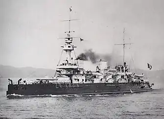 | Armamento | 3 canhões de 340 mm 10 canhões de 164 mm 4 canhões de 65 mm 14 canhões de 47 mm 14 canhões de 37 mm 4 tubos de torpedo de 450 mm |