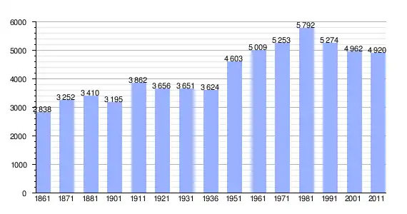 | Variação demográfica do município entre 1861 e 2011[3] |