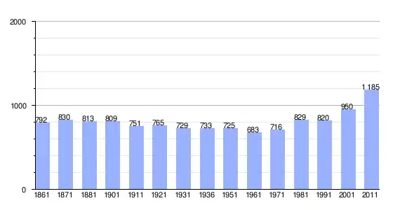 | Variação demográfica do município entre 1861 e 2011[3] |