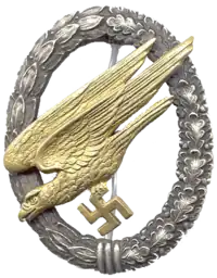 Entretanto, seria a Wehrmacht que levaria esta ideia a um novo patamar. No dia 11 de maio de 1936, o Major Bruno Oswald Brauer fez o primeiro salto de paraquedas da asa de uma aeronave esportiva Klemm KL25 e se tornou o primeiro Fallschirmjäger alemão a ser dado um Fallschirmschutzenschein (Licença de Pára-quedismo). No dia 5 de novembro de 1936, o Fallschirmjäger seria premiado com o Fallschirmschutzenabzeichen(insígnia de pára-quedista que caracteriza uma águia de ouro que agarra as letras FJ).