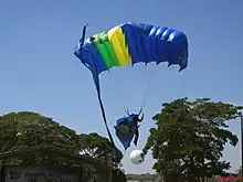 O 1º Esquadrão de Cavalaria Paraquedista é categoria única dentro da cavalaria.[76] Foi criado em 1981 como força motorizada, com jipes e motocicletas, e a intenção de futuramente usar veículos blindados.[77] Lançamentos bem-sucedidos foram testados com o EE-3 Jararaca da Engesa,[78] mas o esquadrão só adotou blindados em dezembro de 2021, com a entrega do VBTP-MR Guarani. Ele é usado nas seções de mísseis anticarro e pode ser aerotransportado pelo C-130 Hércules e KC-390.[79] A artilharia paraquedista adotou o obuseiro OTO Melara Mod 56, facilmente desmontável e entregue por paraquedas.[80] Originalmente não havia uma bateria de artilharia antiaérea, ao contrário das brigadas motorizadas, pela suposição de que um assalto aeroterrestre só ocorreria em condições de superioridade aérea.[77] Ainda assim, a 21ª Bateria de Artilharia Antiaérea foi transferida à Brigada em 2004.[75]