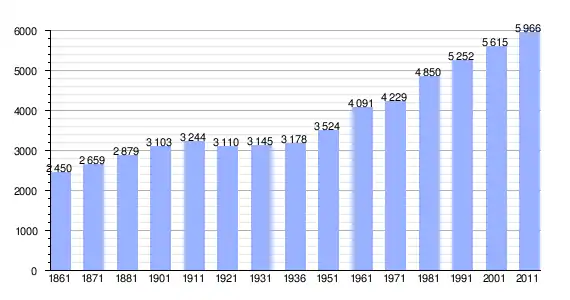 | Variação demográfica do município entre 1861 e 2011[3] |