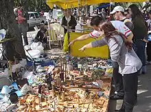 Na feira os expositores vendem artesanato em couro, prata, fibras, madeira, resina, ferro, gesso, vidro e porcelana, antiguidades (peças raras e colecionáveis como joias, móveis, utensílios variados, livros, revistas, selos e discos de vinil), artes plásticas (pinturas, caricaturas, gravuras e esculturas) e alimentos (dos quitutes da culinária baiana, às especiarias árabes, integrais e vegetarianas).[2][1][18]