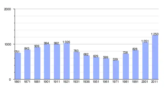 | Variação demográfica do município entre 1861 e 2011[3] |