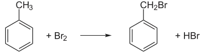 Brometo de benzila pode ser sintetizado pela bromação de tolueno sob condições adequadas para uma halogenação de radicais livres: