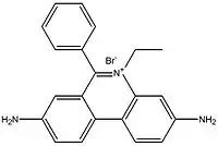 | Outros nomes | Brometo de 2,7-diamino-10-etil-6-fenilfenantridínio, Brometo de 2,7-diamino-10-etil-9-fenilfenantridínio, Brometo de 3,8-diamino-1-etil-6-fenilfenantridínio, Brometo de 5-etil-6-fenil-fenantridino-3,8-diamina, Brometo de etídio, Brometo de homídio, EtBr |