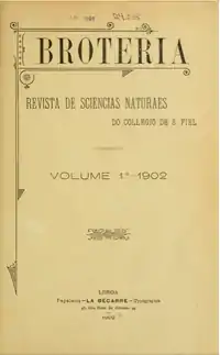 Fundada em 1902, em Louriçal do Campo, por Joaquim da Silva Tavares S.J. (1866-1931)[1], Cândido Azevedo Mendes S.J. (1874-1943)[2] e Carlos Zimmermann S.J. (1871-1950)[3], professores do Colégio de São Fiel, a Brotéria – Revista de Sciencias Naturaes destacou-se no panorama das publicações científicas portuguesas entre o ano da sua fundação e 2002. Na Brotéria publicaram-se mais de 1300 artigos de investigação em áreas como a Botânica, a Zoologia e a Genética, e foram descritas e classificadas sistematicamente 1327 novas espécies zoológicas e 887 novas espécies botânicas, uma clara indicação da relevância científica desta revista em contexto nacional e internacional. Por outro lado, entre 1907 e 1925, foram publicados cerca de 450 artigos de divulgação na série de Vulgarização Científica, em áreas tão díspares como Química, Física, Agricultura, Biologia e Medicina.[4]