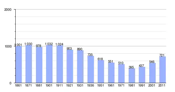 | Variação demográfica do município entre 1861 e 2011[3] |