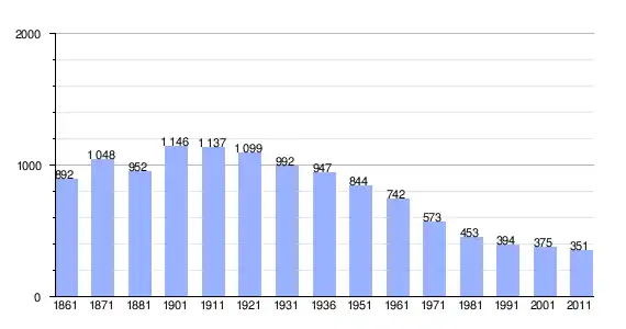 | Variação demográfica do município entre 1861 e 2011[3] |