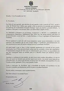 - Licenciado entre 12 de maio de 2016 e 13 de novembro de 2017 para assumir o Ministério das Cidades.